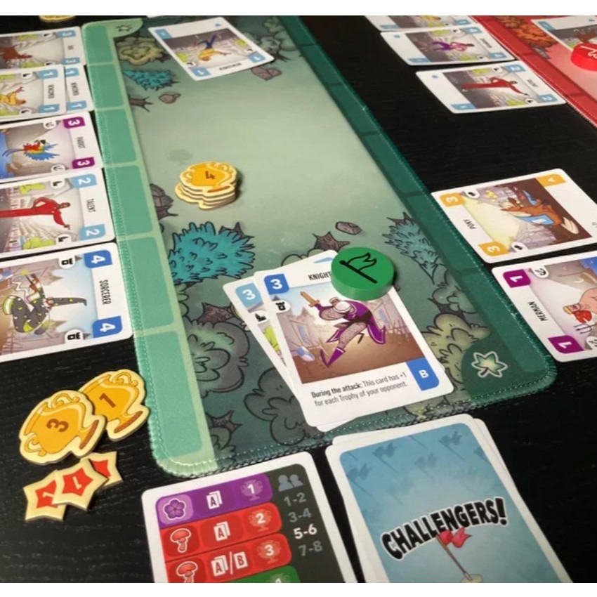 遊戲的玩法為牌庫構築,你可以招募吟遊詩人、海怪、玩具鴨鴨、美人魚、小丑等... 管他的,只要能贏就好,還要考慮到你的運氣!這些卡牌翻開的順序會大大影響著你的勝利與否,這場輸了沒關係!總共會進行7場對戰!最後的前兩名還會來場一對一單挑大賽!緊張又刺激的錦標賽要開始了!快抓起你的行囊前往公園來決一死戰!