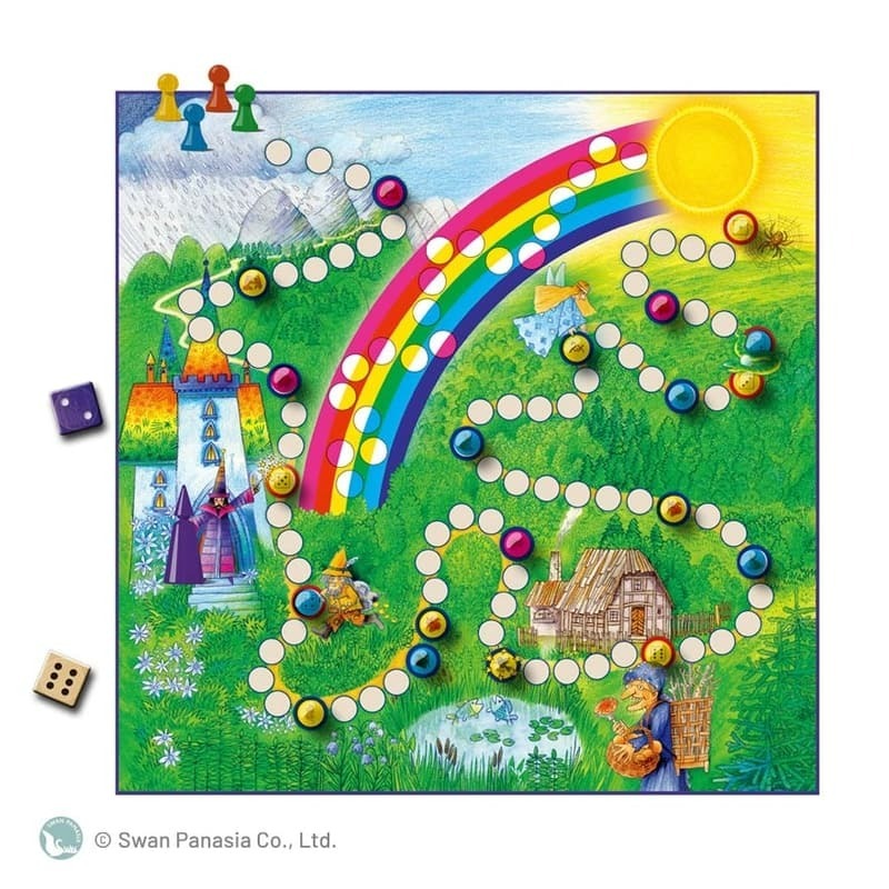 快快收集彩虹掉落的彩色雨滴,如果你們同心協力,就能幫助彩虹回復原有的繽紛。路上隨時要注意巫師的動向,他在你們後面追趕,企圖搶走你的彩色雨滴!如果你們合力搶在巫師之前為彩虹找回遺失的雨滴,讓彩虹恢復絢爛,就能贏得勝利,否則,讓巫師得逞大家就輸了。這是一場驚險刺激的彩虹之戰!